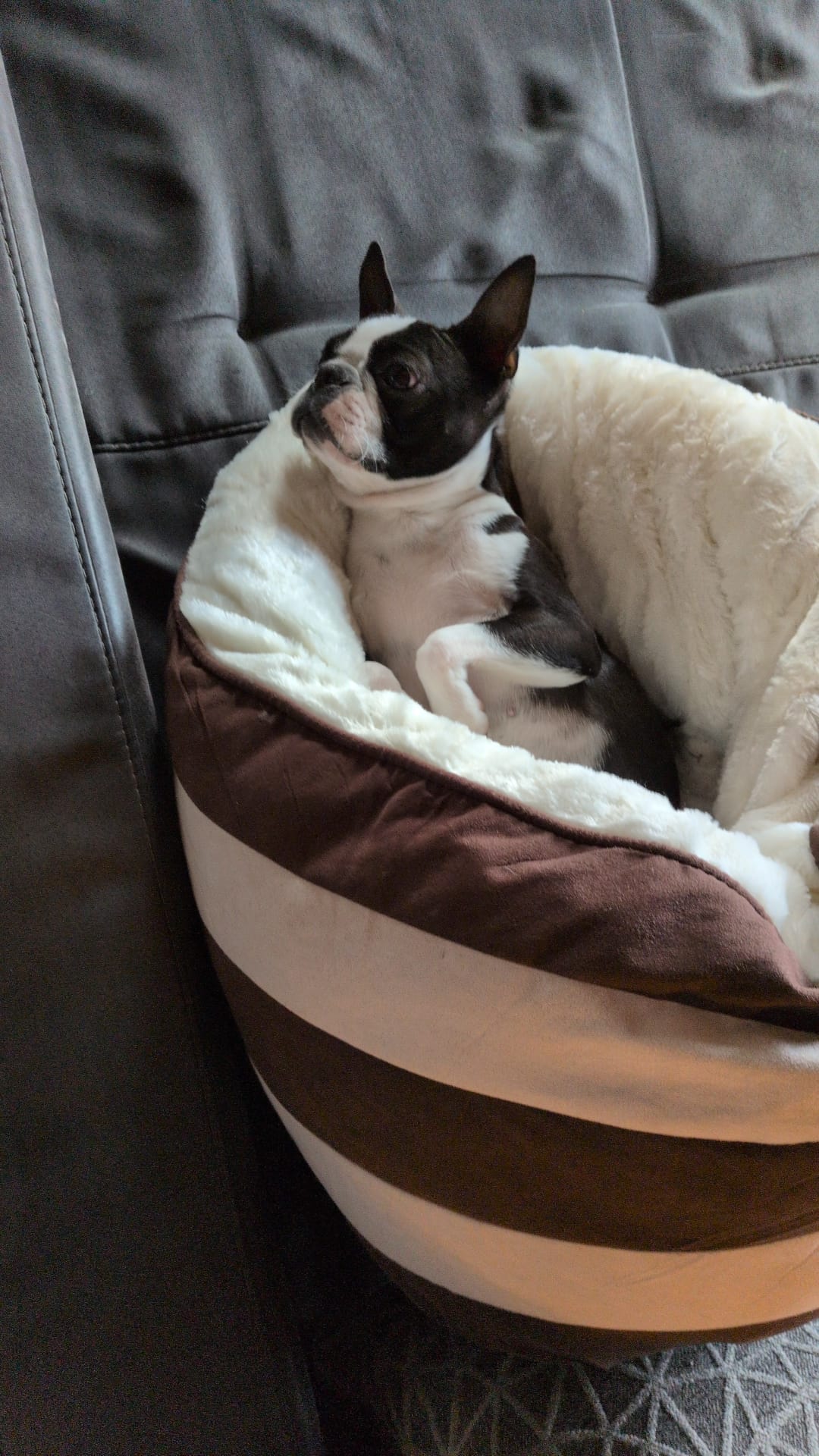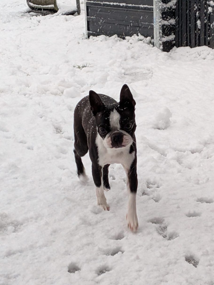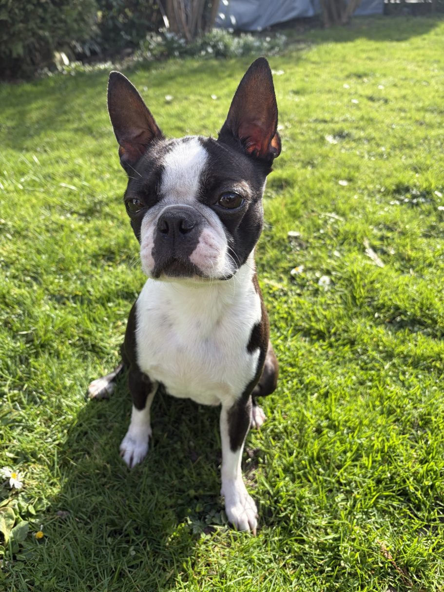 Bali, unsere Boston Terrier Hündin, ist ein echter Wirbelwind und gleichzeitig ein absoluter Familienhund. Mit ihrem sanften und lebhaften Charakter bringt sie jeden zum Lächeln. Sie zeigt sich stets – und insbesondere mit Kindern – von ihrer besten Seite: liebevoll, unkompliziert und einfach zuverlässig.